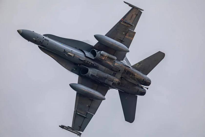 Фотограф сумел сделать фото выстрела тепловой ловушки AN/ALE-47 на истребителе F/A-18D Hornet