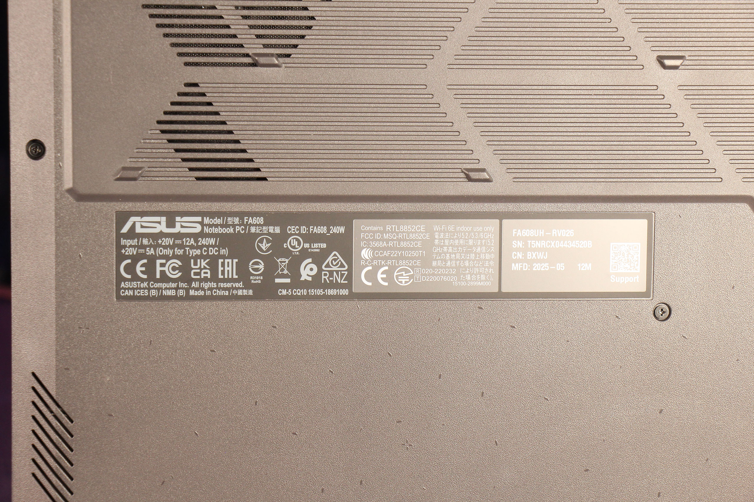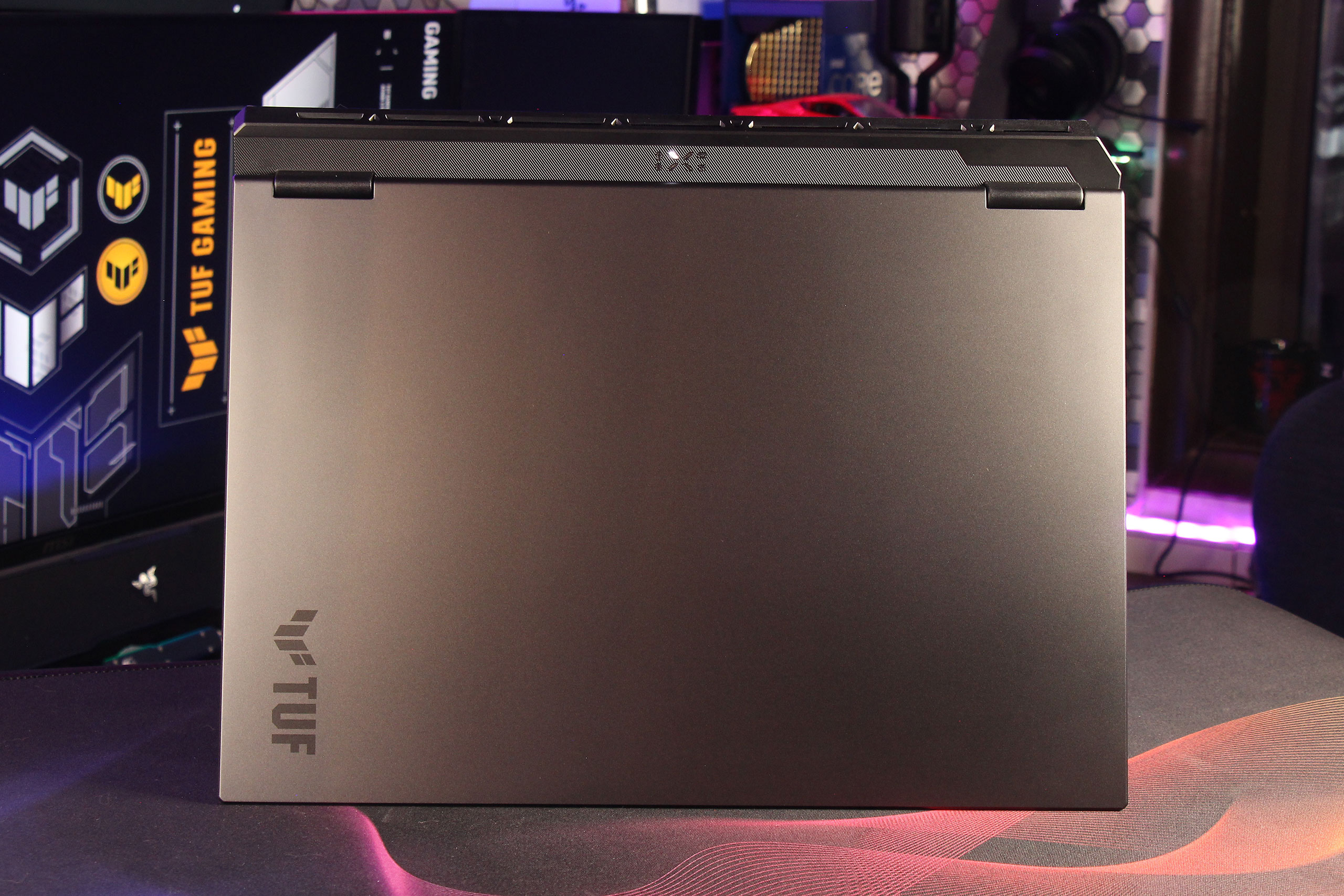 ASUS TUF Gaming A16 версії 2025 року не варто плутати з попередником, що мав таку саму назву та навіть модель FA608, але інший внутрішній індекс далі. А сплутати їх не складно, бо стриманий, але геймерський, стиль у кольорі Mecha Gray залишився без змін. Корпус переважно виготовлений з ABS-пластику з посиленою внутрішньою рамою. На алюмінієвій кришці збоку нанесено логотип TUF Gaming. Візуально ноутбук виглядає гармонійно, без надмірних акцентів, що робить його прийнятним для використання в офісному чи навчальному середовищі й при цьому однозначно демонструє ігрову природу своєю клавіатурою з підсвіткою та деякими елементами декору, на кшталт кнопки ввімкнення чи вентиляційних отворів.