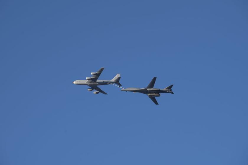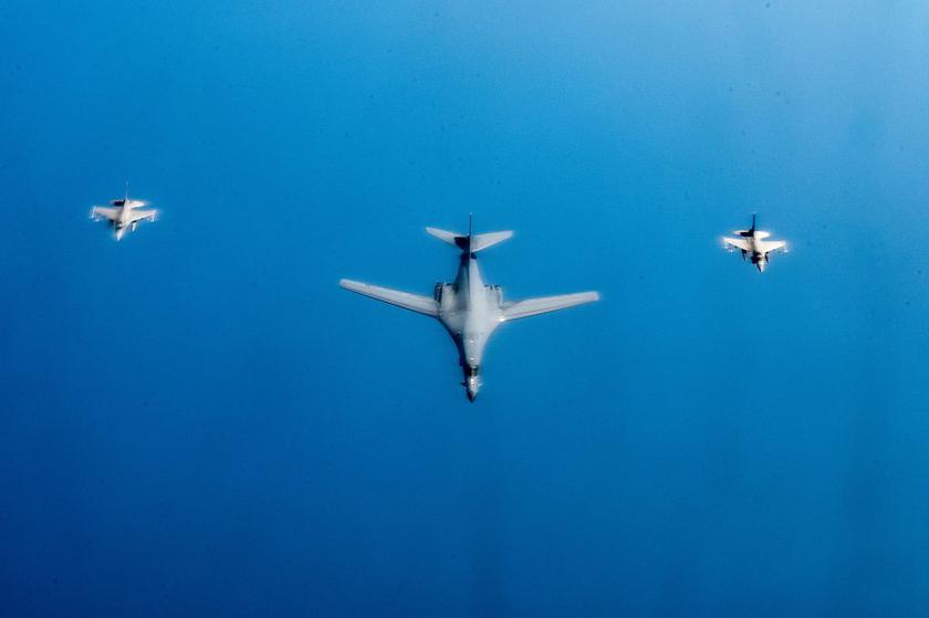 Второй раз бомбардировщики прибыли в регион спустя три дня. Они летели в сопровождении истребителей четвёртого поколения F-16 Fighting Falcon. Судя по фото, самолёты принадлежат 138-й истребительному крылу ВВС Национальной гвардии Оклахомы.